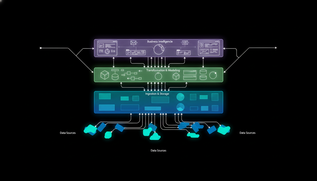 At Stellans, we recommend a proven five-layer architecture that transforms raw marketing data into a strategic asset. This blueprint is designed for clarity, scalability, and performance, so your marketing analytics can evolve with your business.
